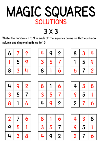 Try it out magic square. This magic square adds up to 34. If you enjoyed solving these magic squares, why not try your hand at making a few of your own? Each square contains the numbers 0 thru 15, and each row, column, and diagonal should add up to 30. The 3x3 magic squares on these puzzle worksheets are the least these harder 4x4 magic squares are step up from the 3x3 puzzles, but still fairly easy to solve if you have the magic constant is the value that you get for each row, column or diagonal sum in a magic square.